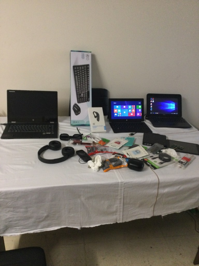 Large Showroom: A spacious area showcasing various tech products including computers, smartphones, tablets, TVs, audio equipment, and other gadgets.